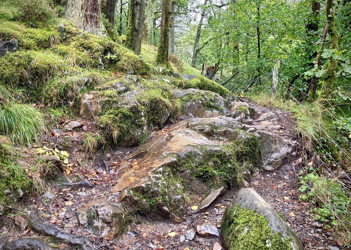 The circular route takes you back to the car park via the fisherman’s path by the riverside, & only at this point did I notice that the map warns of a “narrow section”… We’d come this far & certainly didn’t fancy a reverse trek through the forest river path, so we headed onward. Cue frothing white water rapids surging within inches of the fast disappearing path. Only slightly terrifying.